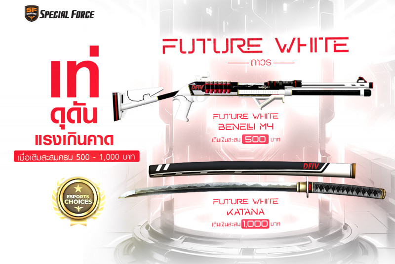 โปรโมชั่นเติมเงินสะสม 500 - 1,000 บาท รับอาวุธ FUTURE WHITE โลกแห่งอนาคตอันบริสุทธิ์ มีโครงสร้างและนวัตกรรมที่ล้ำสมัย