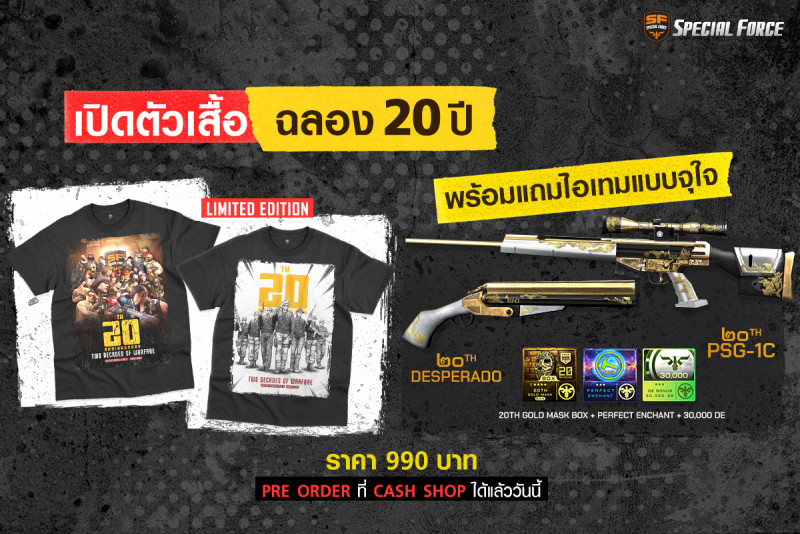 เปิดจำหน่าย Pre Order เสื้อฉลองครบรอบ 20ปี Limited Edition พร้อมไอเทมแรร์ ๒๐th DESPERADO PSG-1C, ๒๐th DESPERADO DESPERADO