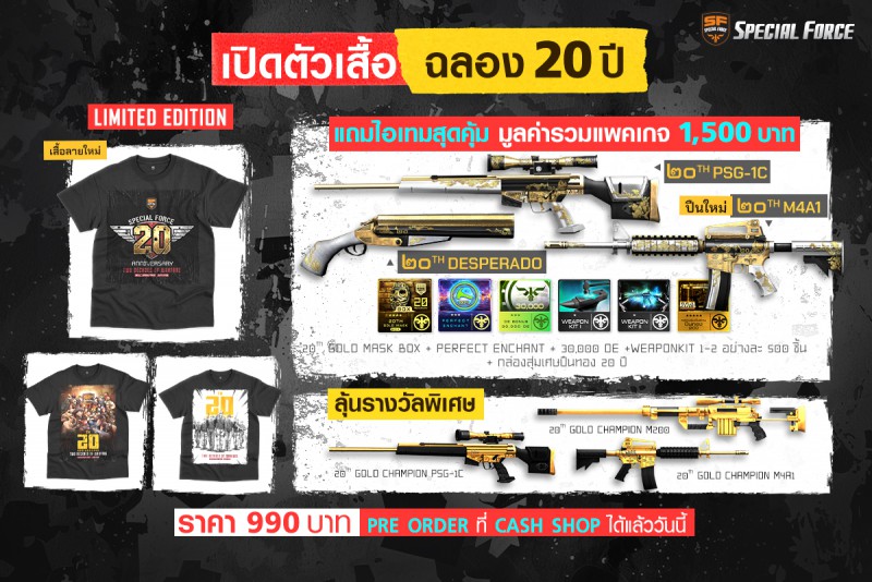 เปิดจำหน่าย Pre Order เสื้อฉลองครบรอบ 20ปี Limited Edition พร้อมไอเทมแรร์ ๒๐th DESPERADO PSG-1C, ๒๐th DESPERADO , ๒๐th M4A1