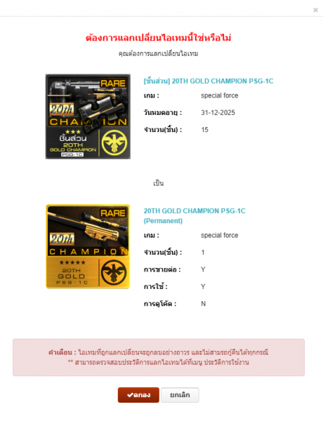 – รางวัลไอเทมดังกล่าวไม่สามารถแลกเปลี่ยนเป็นของรางวัลไอเทมอย่างอื่นหรือเงินสดได้