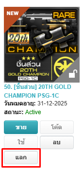 ไอเทมชิ้นส่วน 20th GOLD CHAMPION (สามารถวางจำหน่าย Myarena Market)