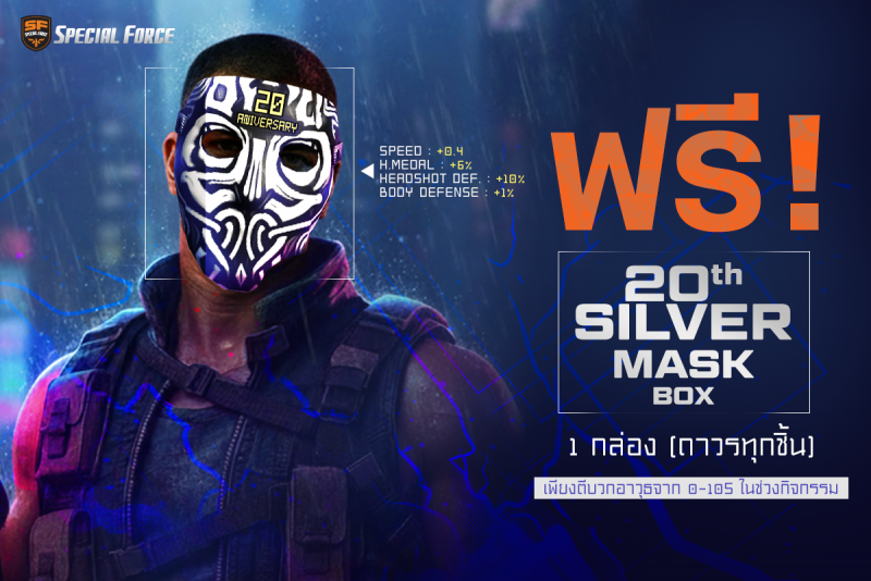 ตีบวกอาวุธใดก็ได้จาก 0 ติด 10S 20th SILVER MASK BOX 1 กล่อง (ป้อง 30m)