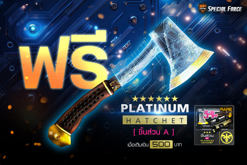 เติม 1,500 บาท รับ [ชิ้นส่วน A] PLATINUM HATCHET 3 ชิ้น