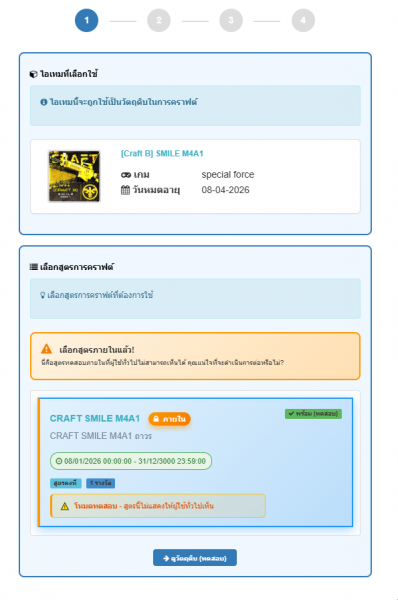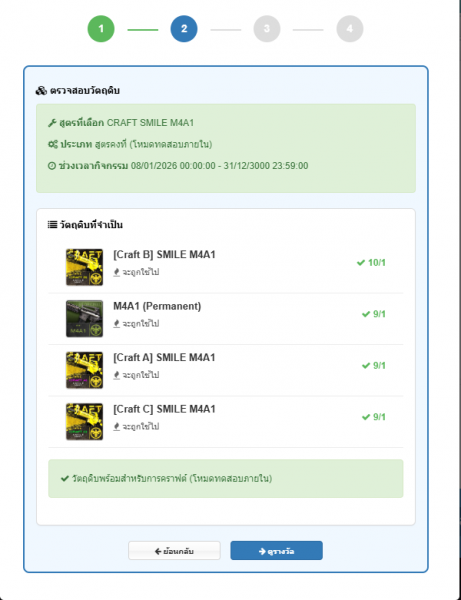 *หมายเหตุ วัตถุดิบที่ใช้ในการคราฟต์จะหายไปตามจำนวนที่กำหนด