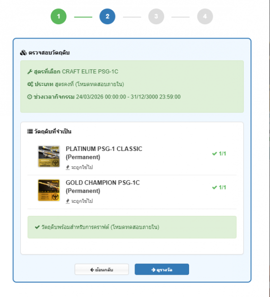 *หมายเหตุ วัตถุดิบที่ใช้ในการคราฟต์จะหายไปตามจำนวนที่กำหนด