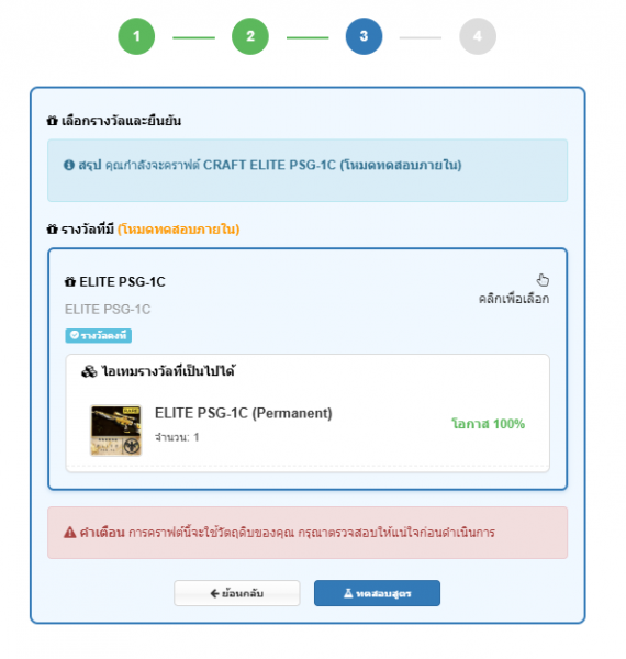 4.ระบบแสดงรางวัลที่ได้รับ มีโอกาสคราฟต์สำเร็จ 100% > ยืนยันการคราฟต์