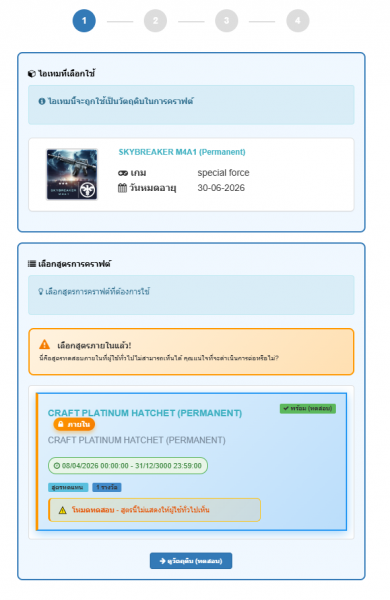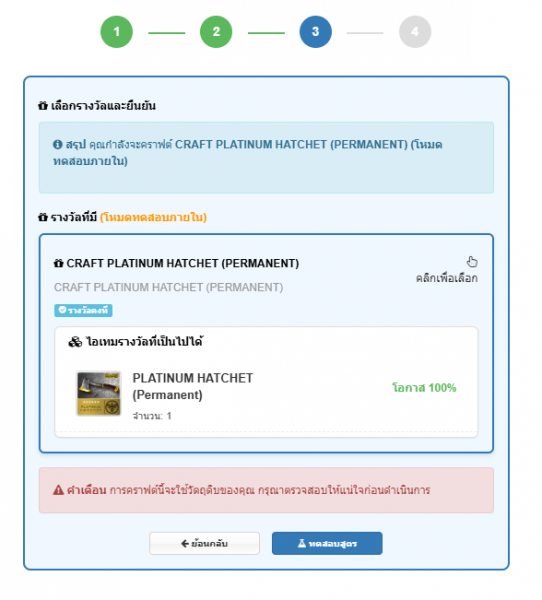 4.ระบบแสดงรางวัลที่ได้รับ มีโอกาสคราฟต์สำเร็จ 100% > ยืนยันการคราฟต์