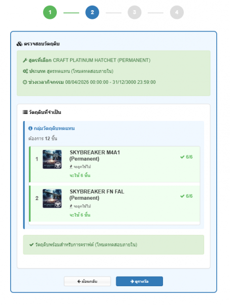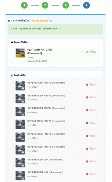 *หมายเหตุ วัตถุดิบที่ใช้ในการคราฟต์จะหายไปตามจำนวนที่กำหนด
