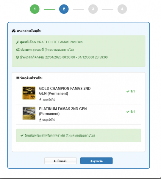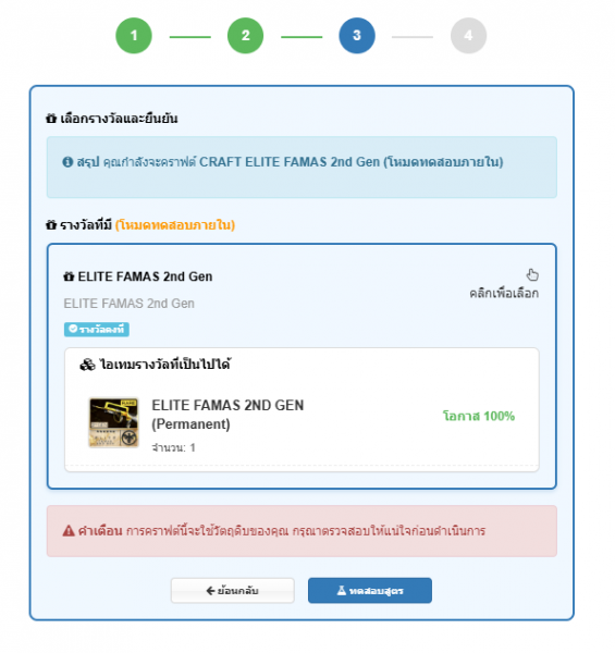 4.ระบบแสดงรางวัลที่ได้รับ มีโอกาสคราฟต์สำเร็จ 100% > ยืนยันการคราฟต์