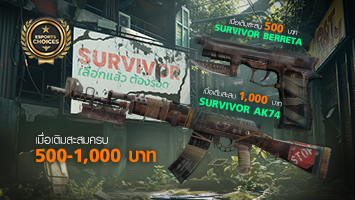 โปรโมชั่นเติมเงินสะสม 500 - 1,000 บาท รับอาวุธซีรี่ย์ SURVIVOR ถาวร